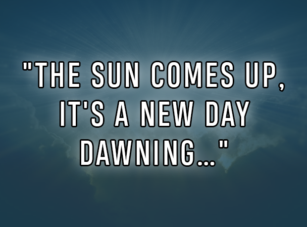 "The sun comes up, it's a new day dawning…"