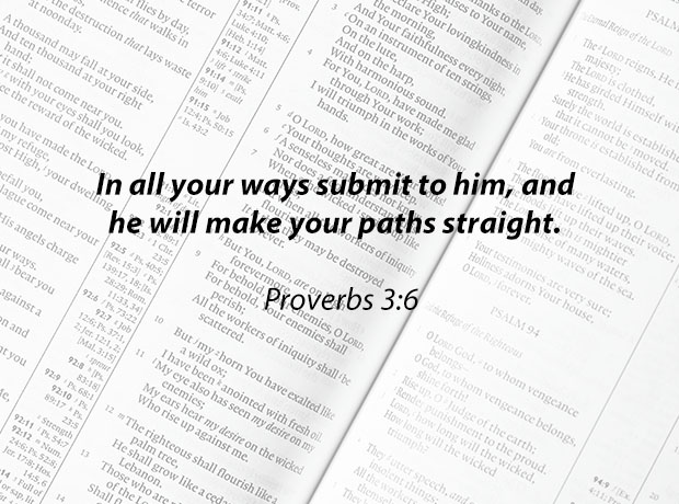 In all your ways submit to him, and he will make your paths straight. Proverbs 3:6